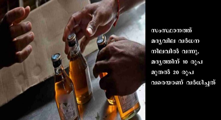 തിരുവനന്തപുരം: സംസ്ഥാനത്ത് മദ്യവില വർധന നിലവിൽ വന്നു. മദ്യത്തിന് 10 രൂപ മുതൽ 20 രൂപ വരെയാണ് വർധിച്ചത്.