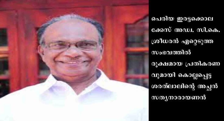 കൊച്ചി: പെരിയ ഇരട്ടക്കൊലക്കേസ് അഡ്വ. സി.കെ.ശ്രീധരൻ ഏറ്റെടുത്ത സംഭവത്തിൽ രൂക്ഷമായ പ്രതികരണവുമായി കൊല്ലപ്പെട്ട ശരത്ലാലിന്റെ അച്ഛൻ സത്യനാരായണൻ. ശ്രീധരൻ കൂടെ നിന്ന് ചതിക്കുകയായിരുന്നുവെന്നും അതിൽ അതിയായ വേദനയുണ്ടെന്നും സത്യനാരായണൻ പറഞ്ഞു.