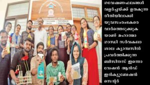 .എമി എസ്.മാത്യു, വിപിന വിനോദ് എന്നിവർ ചേർന്ന് വികസിപ്പിച്ചെടുത്ത നാനോ ഹൈഡ്രോജെൽ പ്രമേഹരോഗികളിലെ മുറിവുകൾ ഉണക്കും. ഭക്ഷ്യസുരക്ഷയ്ക്കായി ഒരു സ്റ്റാർട്ടപ്പിന് രൂപം നൽകുകയാണ് ഗവേഷണ വിദ്യാർഥിയായ ജെ. അജ്മൽ.