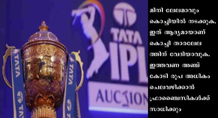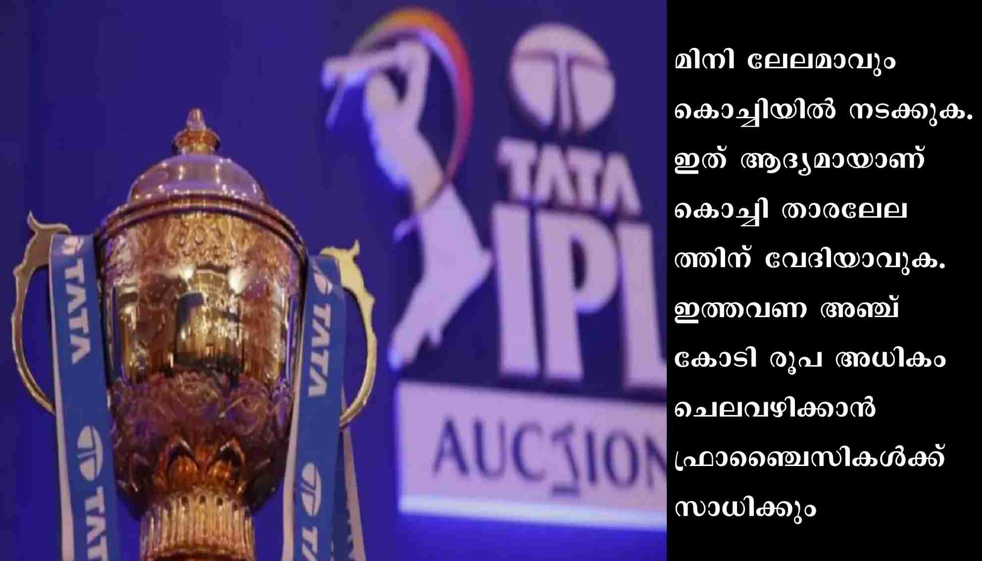 കൊച്ചി: വരുന്ന ഐപിഎൽ സീസണിലേക്കുള്ള ലേലം 23/12/22 വെള്ളിയാഴ്ച കൊച്ചിയിൽ നടക്കും. മിനി ലേലമാവും കൊച്ചിയിൽ നടക്കുക. ഇത് ആദ്യമായാണ് കൊച്ചി താരലേലത്തിന് വേദിയാവുക. ഇത്തവണ അഞ്ച് കോടി രൂപ അധികം ചെലവഴിക്കാൻ ഫ്രാഞ്ചൈസികൾക്ക് സാധിക്കും. കഴിഞ്ഞ സീസണിൽ ആകെ 90 കോടി രൂപയായിരുന്നു ആകെ ചെലവഴിക്കാവുന്ന തുക. ഇത്തവണ അത് 95 കോടിയാവും.