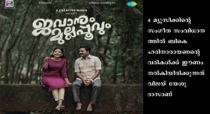സുമേഷും രാഹുലും ശിവദയും ഒന്നിക്കുന്ന ‘ജവാനും മുല്ലപ്പൂവും’ എന്ന ചിത്രത്തിലെ പുതിയ ഗാനം റിലീസായി.4 മ്യൂസിക്കിന്റെ സംഗീത സംവിധാനത്തില് ബികെ ഹരിനാരായണന്റെ വരികള്ക്ക് ഈണം നല്കിയിരിക്കുന്നത് വിജയ് യേശുദാസാണ്.