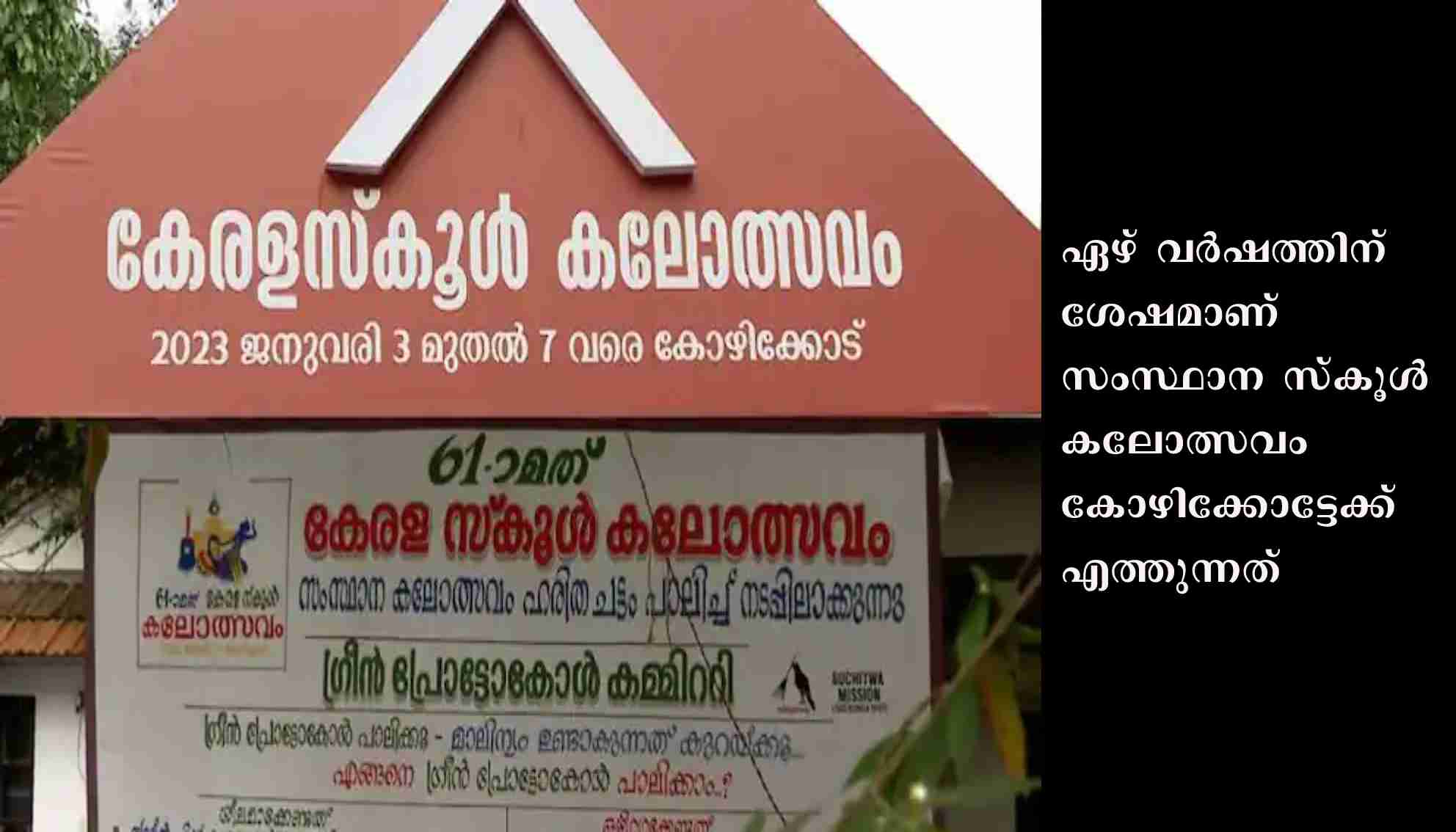 കോഴിക്കോട്: കൊവിഡ് കാലത്തിന് ശേഷം വീണ്ടുമൊരു കലോത്സവമെത്തുന്നു. രണ്ട് വർഷത്തെ ഇടവേളക്ക് ശേഷമെത്തുന്ന മേളയ്ക്ക് ഇക്കുറി വേദിയാവുന്നത് കോഴിക്കോടാണ്. ഏഴ് വർഷത്തിന് ശേഷമാണ് സംസ്ഥാന സ്കൂൾ കലോത്സവം കോഴിക്കോട്ടേക്ക് എത്തുന്നത്.