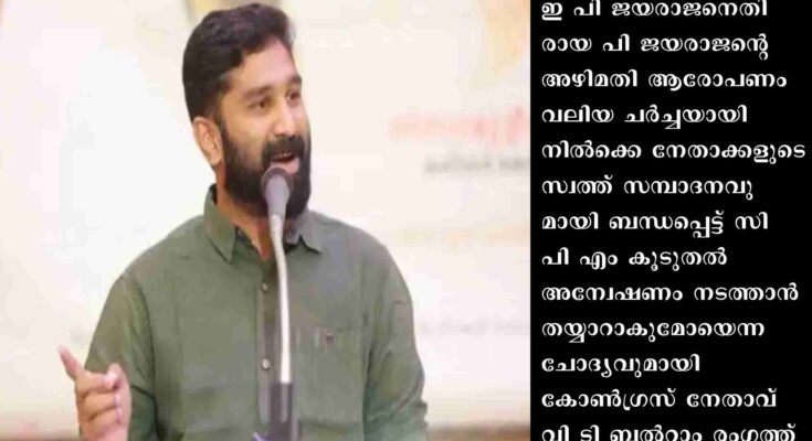 ബൽറാമിന്റെ കുറിപ്പിന്റെ പൂർണരൂപം : ഒരു പ്രമുഖന്റെ മകളോട് ഒരു ടിവി ഇന്റർവ്യൂവിൽ ചോദ്യം ചോദിക്കുന്നുണ്ട്, താങ്കൾക്ക് 100 കോടിയിൽപ്പരം രൂപയുടെ സ്വത്തുണ്ടെന്ന് ആക്ഷേപമുണ്ടല്ലോ എന്ന്. പ്രമുഖ മകൾ പറയുന്ന മറുപടി ഏയ് അത്രയ്ക്കൊന്നുമില്ല, അതിന്റെ പകുതി പോലും ഇല്ല എന്നാണ്. ശ്രദ്ധിക്കുക, അതിന്റെ പത്തിലൊന്ന് പോലുമില്ലെന്നോ നൂറിലൊന്ന് പോലുമില്ലെന്നോ അല്ല മറുപടി എന്ന്! മണ്ടനും ഗുണ്ടയും തമ്മിലുള്ള ആരോപണ പ്രത്യാരോപണങ്ങൾക്കൊപ്പം ഈ പ്രമുഖ കുടുംബത്തിന്റെ സ്വത്ത് സമ്പാദനത്തേക്കുറിച്ചുകൂടി അന്വേഷിക്കാൻ സിപിഎം തയ്യാറാവുമോ?