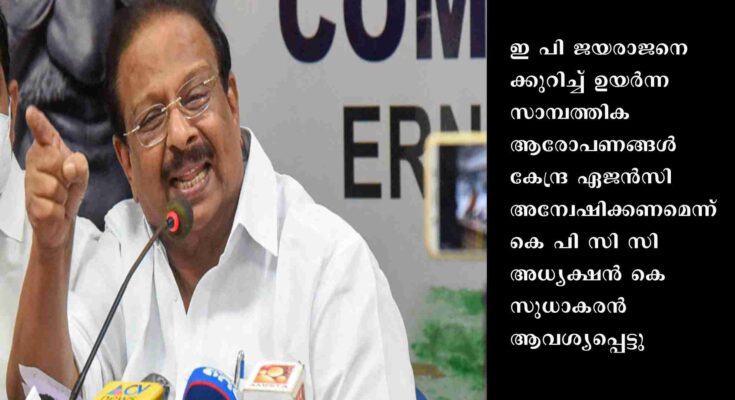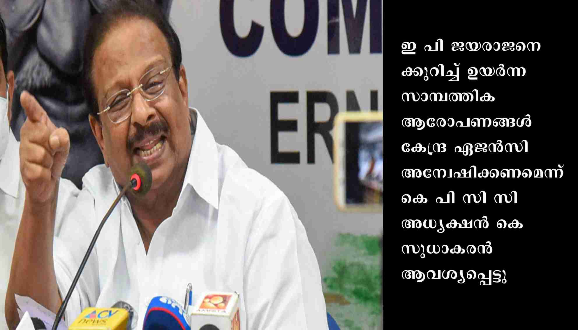 ഇ പി ജയരാജനെതിരായ സാമ്പത്തിക ആരോപണങ്ങള്‍ കേന്ദ്ര ഏജന്‍സി അന്വേഷിക്കണമെന്ന കെ സുധാകരന്‍