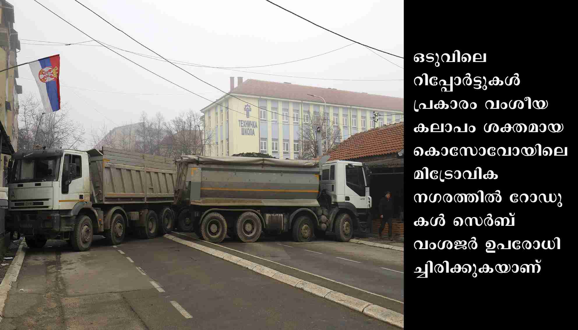 സെര്ബ് വംശജനായ മുന് പോലീസുകാരനെ അറസ്റ്റ് ചെയ്തതിനേത്തുടര്ന്ന് കഴിഞ്ഞ 10 മുതല് വടക്കന് കൊസോവോയിലെ മിട്രോവിക നഗരത്തില് വംശീയസംഘര്ഷം രൂക്ഷമാണ്. റോഡുകള് ഉപരോധിച്ച സെര്ബ് വംശജരും പോലീസുമായി പലയിടത്തും പരസ്പരം വെടിവയ്പ്പുണ്ടായി.ക്രിമിനല് സംഘങ്ങളുമായി ചര്ച്ചയ്ക്കില്ലെന്നും റോഡുകള് ഉപരോധിക്കാന് അനുവദിക്കില്ലെന്നും കൊസോവോ സര്ക്കാര് വ്യക്തമാക്കി. സംഘര്ഷം അടിച്ചമര്ത്താന് പോലീസിനു ശേഷിയുണ്ടെങ്കിലും നാറ്റോയുടെ സമാധാനദൗത്യസേനയ്ക്കായി കാത്തിരിക്കുകയാണെന്ന നിലപാടിലാണു കൊസോവോ സര്ക്കാര്. കൊസോവോയില് ഇരുവിഭാഗവും സംയമനം പാലിക്കണമെന്നും സമാധാനചര്ച്ചകളെ ബാധിക്കുന്ന തരത്തില് അഭ്യൂഹങ്ങള് പ്രചരിപ്പിക്കരുതെന്നും സമാധാനദൗത്യസേന അഭ്യര്ഥിച്ചു.അല്ബേനിയന് ഭൂരിപക്ഷമേഖലയിലേക്കുള്ള റോഡുകളില് ട്രക്കുകള് നിരത്തിയാണു സെര്ബ് വംശജര് ഉപരോധം തീര്ത്തിരിക്കുന്നത്. അറസ്റ്റിലായ പോലീസുകാരനെ വിട്ടയയ്ക്കുന്നതുള്പ്പെടെ ആവശ്യങ്ങള് അംഗീകരിച്ചാലേ റോഡ് ഉപരോധം പിന്വലിക്കൂവെന്നാണു സെര്ബുകളുടെ നിലപാട്.