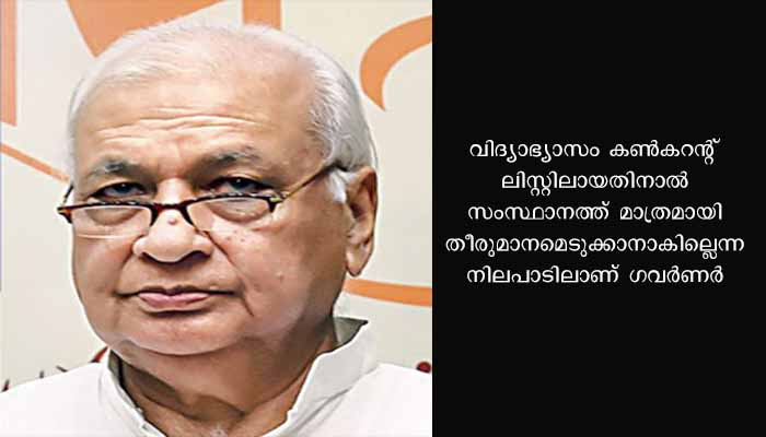 ചാന്സിലര് സ്ഥാനത്ത് നിന്ന് മാറ്റുന്ന ബില്ലില് വേഗത്തില് തീരുമാനമെടുക്കില്ലെന്ന് നേരത്തെ ആരിഫ് മുഹമ്മദ് ഖാന് വ്യക്തമാക്കിയിരുന്നു. വിദ്യാഭ്യാസം കണ്കറന്റ് ലിസ്റ്റിലായതിനാല് സംസ്ഥാനത്ത് മാത്രമായി തീരുമാനമെടുക്കാനാകില്ലെന്ന നിലപാടിലാണ് ഗവര്ണര്. ഇതിനായി കേന്ദ്രത്തിന്റെ അനുമതി വേണം. ഇത് കൂടി പരിഗണിക്കണമെന്നും ഗവര്ണര് പറയുന്നു.