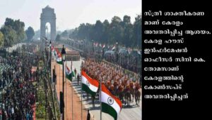 റിപ്പബ്ലിക് ദിന പരേഡിൽ ഫ്ലോട്ട് അവതരിപ്പിക്കുന്ന സംസ്ഥാനങ്ങളുടെ ചുരുക്കപ്പട്ടികയിൽ ഇടം പിടിച്ച് കേരളവും . ഒരു മാസത്തിനിടെ ആറ് റൗണ്ട് സ്ക്രീനിംഗാണ് നടന്നത്. സ്ത്രീ ശാക്തീകരണമാണ് കേരളം അവതരിപ്പിച്ച ആശയം. കേരള ഹൗസ് ഇൻഫർമേഷൻ ഓഫീസർ സിനി കെ. തോമസാണ് കേരളത്തിന്റെ കോൺസപ്ട് അവതരിപ്പിച്ചത്. ദുബായ് ബേസ്ഡ് ഡിസൈനർ റോയ് ജോസഫാണ് ഡിസൈനർ