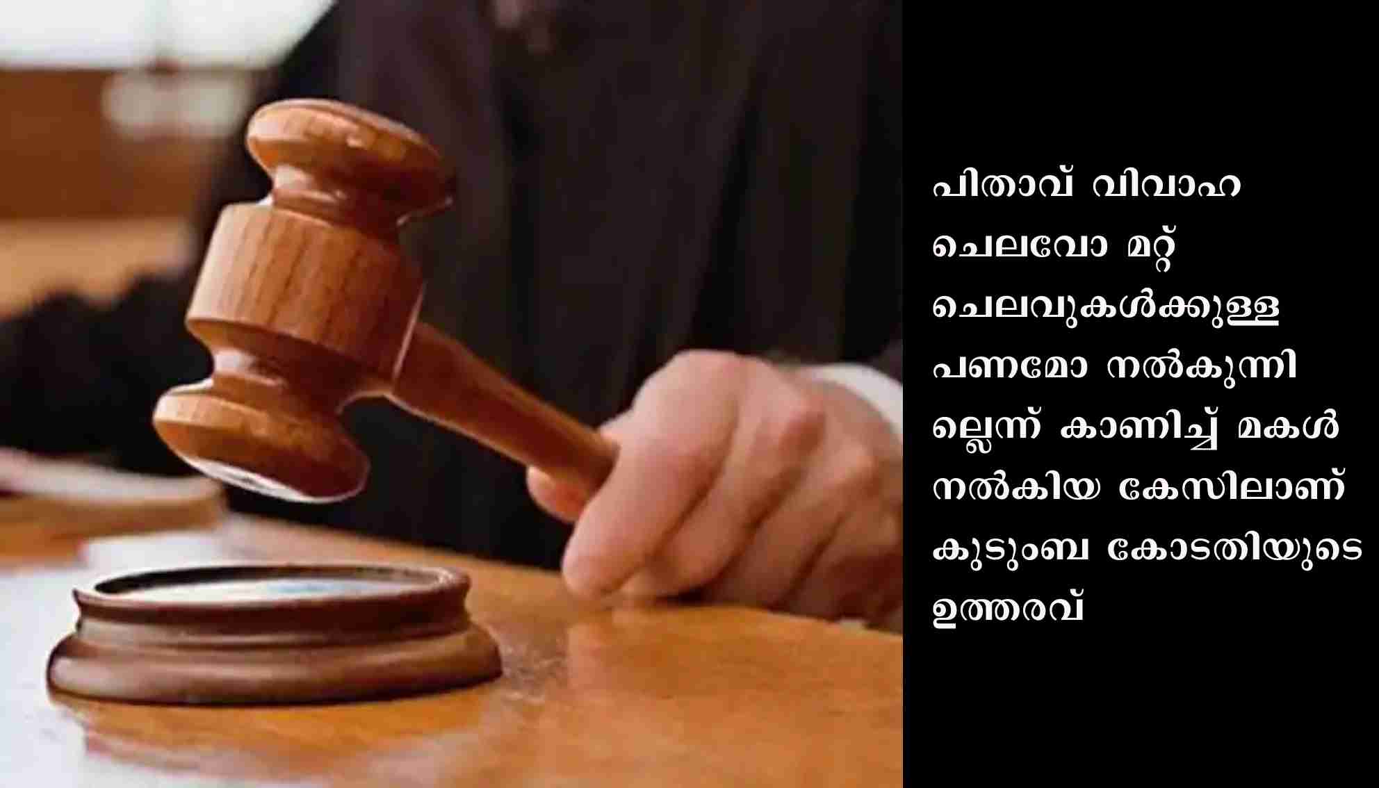 തന്നെ അറിയിക്കാതെ വിവാഹം ചെയ്ത മകള്ക്ക് വിവാഹ ചെലവ് നല്ക്കാന് കഴിയില്ലെന്നും അതിന് അര്ഹതയില്ലെന്നും പിതാവ് കോടതിയില് വാദിച്ചു. തുടര്ന്ന് തെളിവുകള് പിരിശോധിച്ച കോടതി പിതാവിന്റെ വാദം അംഗീകരിക്കുകയും മകള് സമര്പ്പിച്ച ഹര്ജികള് തള്ളുകയുമായിരുന്നു. പ്രണയ വിവാഹം കഴിച്ച മകള്ക്ക് പിതാവില് നിന്നും വിവാഹ ചെലവോ മറ്റ് ചെലവുകളോ ലഭിക്കുന്നതിന് അര്ഹതയില്ലെന്നും വിധിച്ച് കുടുംബ കോടതി ജഡ്ജി ഡി. സുരേഷ് കുമാര് ഉത്തരവിട്ടു. ശെല്വദാസിന് വേണ്ടി അഡ്വക്കേറ്റുമാരായ പി വി ഗോപകുമാര് മാമ്പുഴ, കെ എം അബ്ദുള് ഷൂക്കൂര് എന്നിവര് ഹാജരായി.