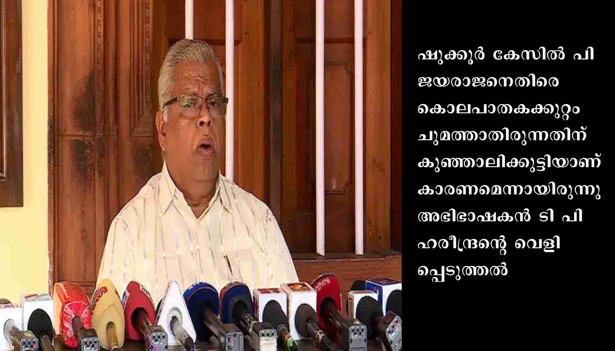 2012 ൽ നടന്ന സംഭവത്തിൽ സിപിഐഎം നേതാക്കൾക്കും പ്രവർത്തകർക്കുമെതിരെ കള്ളക്കേസ് ചുമത്തുകയായിരുന്നു. കള്ള തെളിവ് ഉണ്ടാക്കാൻ ശ്രമിച്ച അഭിഭാഷകന്റെ പേരിൽ കേസെടുക്കണമെന്നും ജയരാജൻ പ്രസ്താവനയിൽ പറഞ്ഞു. 2012 ഫെബ്രുവരിയിൽ പട്ടുവം അരിയിൽ ലീഗ് സിപിഎം സംഘർഷമുണ്ടായപ്പോൾ പി ജയരാജൻ പ്രദേശത്ത് എത്തി. അന്ന് ജയരാജന്റെ വാഹനം ആക്രമിച്ചതിന് പ്രതികാരമായാണ് എംഎസ്എഫ് നേതാവായ അരിയിൽ ഷുക്കൂറിനെ സിപിഎം പ്രവർത്തകർ തടങ്കലിൽ വച്ച് ആക്രമിച്ച് കൊലപ്പെടുത്തിയത്.അന്നത്തെ എസ്പിയെ കുഞ്ഞാലിക്കുട്ടി സ്വാധീനിച്ച് ദുർബല വകുപ്പ് മാത്രം ചുമത്തി ജയരാജനെ രക്ഷിച്ചെന്നാണ് ഹരീന്ദ്രന്റെ ആരോപണം