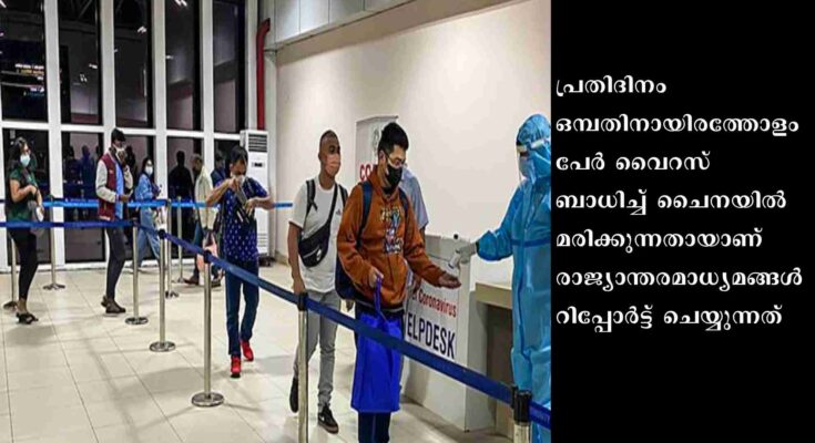 ചൈനയില് വൈറസ് ബാധിച്ച് മരിക്കുന്നവരുടെ എണ്ണം പ്രതിദിനം 9,000 ആയി വര്ധിച്ചതായി കോവിഡ് കണക്കുകള് അവലോകനം ചെയ്യുന്ന ബ്രിട്ടന് ആസ്ഥാനമായുള്ള ഗവേഷണ സ്ഥാപനം ”എയര്ഫിനിറ്റി”യെ ഉദ്ധരിച്ച് ഓസ്ട്രേലിയന് മാധ്യമം റിപ്പോര്ട്ട് ചെയ്തു.രോഗബാധിതരുടെ എണ്ണം ചൈനയില് കുതിച്ചുയരുകയാണ്. കോവിഡ് ബാധിച്ച് മരിക്കുന്നവരുടെ എണ്ണം നിലവില് പുറത്തുവരുന്ന കണക്കുകളുടെ ഇരട്ടിയാണെന്നും എയര്ഫിനിറ്റി റിപ്പോര്ട്ട് ചൂണ്ടിക്കാട്ടുന്നു. നിയന്ത്രണങ്ങള് പിന്വലിച്ചതോടെയാണ് െചെനയില് കോവിഡ് ഇത്രവേഗം പടര്ന്നുപിടിച്ചതെന്നും റിപ്പോര്ട്ടിലുണ്ട്. രാജ്യത്തെ ഒമ്പതോളം പ്രധാന നഗരങ്ങളിലുണ്ടായ കടുത്ത പ്രതിഷേധത്തെത്തുടര്ന്നാണ് െചെനയില് കോവിഡ് നയം മാറ്റിയത്. ഡിസംബറില് െചെനയിലെ ആകെ കോവിഡ് മരണം ഒരു ലക്ഷമായേക്കാമെന്നും റിപ്പോര്ട്ടിലുണ്ട്. ജനുവരി പകുതിയോടെ, ഒരു ദിവസം 3.7 ദശലക്ഷം കോവിഡ് കേസുകള് ഉണ്ടാകാം. ജനുവരി അവസാനവാരത്തോടെ ആകെ മരണം 5,84,000 ആയേക്കാമെന്നും എയര്ഫിനിറ്റിയുടെ റിപ്പോര്ട്ട് ചൂണ്ടിക്കാട്ടുന്നു.