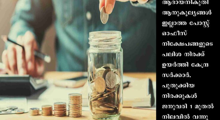 ന്യൂഡല്ഹി: ആദായനികുതി ആനുകൂല്യങ്ങള് ഇല്ലാത്ത പോസ്റ്റ് ഓഫീസ് നിക്ഷേപങ്ങളുടെ പലിശ നിരക്ക് ഉയര്ത്തി കേന്ദ്ര സര്ക്കാര്. പുതുക്കിയ നിരക്കുകള് ജനുവരി 1 മുതല് നിലവില് വന്നു.ചെറുകിട നിക്ഷേപങ്ങളുടെ പലിശ നിരക്ക് 1.1 ശതമാനം വരെ വര്ധിപ്പിച്ചതായി ധനമന്ത്രാലയം പുറത്തിറക്കിയ വിജ്ഞാപനത്തില് വ്യക്തമാക്കി.