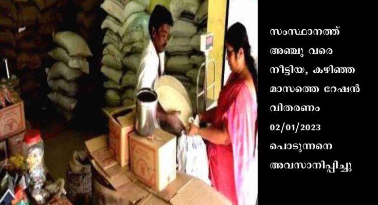 തിരുവനന്തപുരം: സംസ്ഥാനത്ത് അഞ്ചു വരെ നീട്ടിയ, കഴിഞ്ഞ മാസത്തെ റേഷന് വിതരണം 02/01/2023 പൊടുന്നനെ അവസാനിപ്പിച്ചു. രാജ്യത്തെ റേഷന് വിതരണത്തില് ഈ മാസം ഒന്നു മുതല് കേന്ദ്ര സര്ക്കാര് നയപരമായ മാറ്റം വരുത്തിയതിനെത്തുടര്ന്നാണിത്.