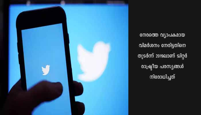 “മുന്നോട്ട് പോകുമ്പോൾ, ഞങ്ങളുടെ പരസ്യ നയം ടിവിയുടെയും മറ്റ് മീഡിയ ഔട്ട്ലെറ്റുകളുടെയും നയവുമായി വിന്യസിക്കും. എല്ലാ നയ മാറ്റങ്ങളും പോലെ ഉള്ളടക്കം അവലോകനം ചെയ്യുന്നതിനും അംഗീകരിക്കുന്നതിനുമുള്ള ഞങ്ങളുടെ സമീപനം ട്വിറ്ററിലെ ആളുകളെ സംരക്ഷിക്കുന്നുവെന്ന് ഞങ്ങൾ ആദ്യം ഉറപ്പാക്കും. ഇതിന്റെ നടപടികൾ പുരോഗമിക്കുമ്പോൾ ഞങ്ങൾ കൂടുതൽ വിശദാംശങ്ങൾ പങ്കിടും” മറ്റൊരു ട്വീറ്റിലൂടെ ട്വിറ്റർ അറിയിച്ചു.