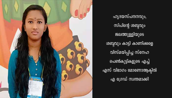 കോഴിക്കോട്: അഭ്യസിപ്പിക്കാൻ ഗുരുക്കൾ ഇല്ല. മിമിക്രി കണ്ട് ഇഷ്ടപ്പെട്ടു…പഠിച്ചു..എ ഗ്രേഡ് നേടി. തൃശൂർ പേരാമംഗലം ശ്രീദുർഗ വിലാസം സ്കൂളിലെ എട്ടാം ക്ലാസ്സ്‌ വിദ്യാർത്ഥി സ്നേഹ കെ എസ് വിസ്മയമാവുകയാണ്. ഹൃദയസ്പന്ദനവും, സിപിന്റെ ശബ്ദവും ജലത്തുള്ളിയുടെ ശബ്ദവും കാട്ടി കാണിക്കളെ വിസ്മയിപ്പിച്ച സ്നേഹ പെൺകുട്ടികളുടെ എച്ച് എസ് വിഭാഗം മോണോആക്ടിൽ എ ഗ്രേഡ് സ്വന്തമാക്കി.