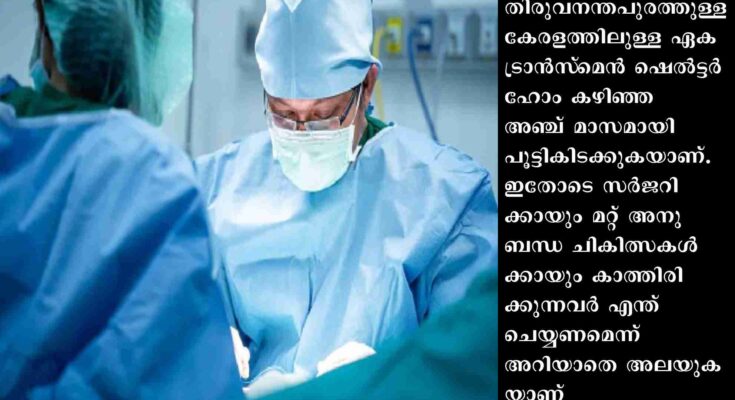 കൊച്ചി: ട്രാൻസ്‌ജെൻഡർ സൗഹൃദ സംസ്ഥാനമെന്ന് പറയുമ്പോഴും കയറികിടക്കാൻ ഇടമില്ലാതെ അലയുകയാണ് കേരളത്തിലെ ട്രാൻസ്‌മെൻ സമൂഹം.തിരുവനന്തപുരത്തുള്ള കേരളത്തിലുള്ള ഏക ട്രാൻസ്‌മെൻ ഷെൽട്ടർ ഹോം കഴിഞ്ഞ അഞ്ച്മാസമായി പൂട്ടികിടക്കുകയാണ്. ഇതോടെ സർജറിക്കായും മറ്റ് അനുബന്ധ ചികിത്സകൾക്കായും കാത്തിരിക്കുന്നവർ എന്ത് ചെയ്യണമെന്ന് അറിയാതെ അലയുകയാണ്.