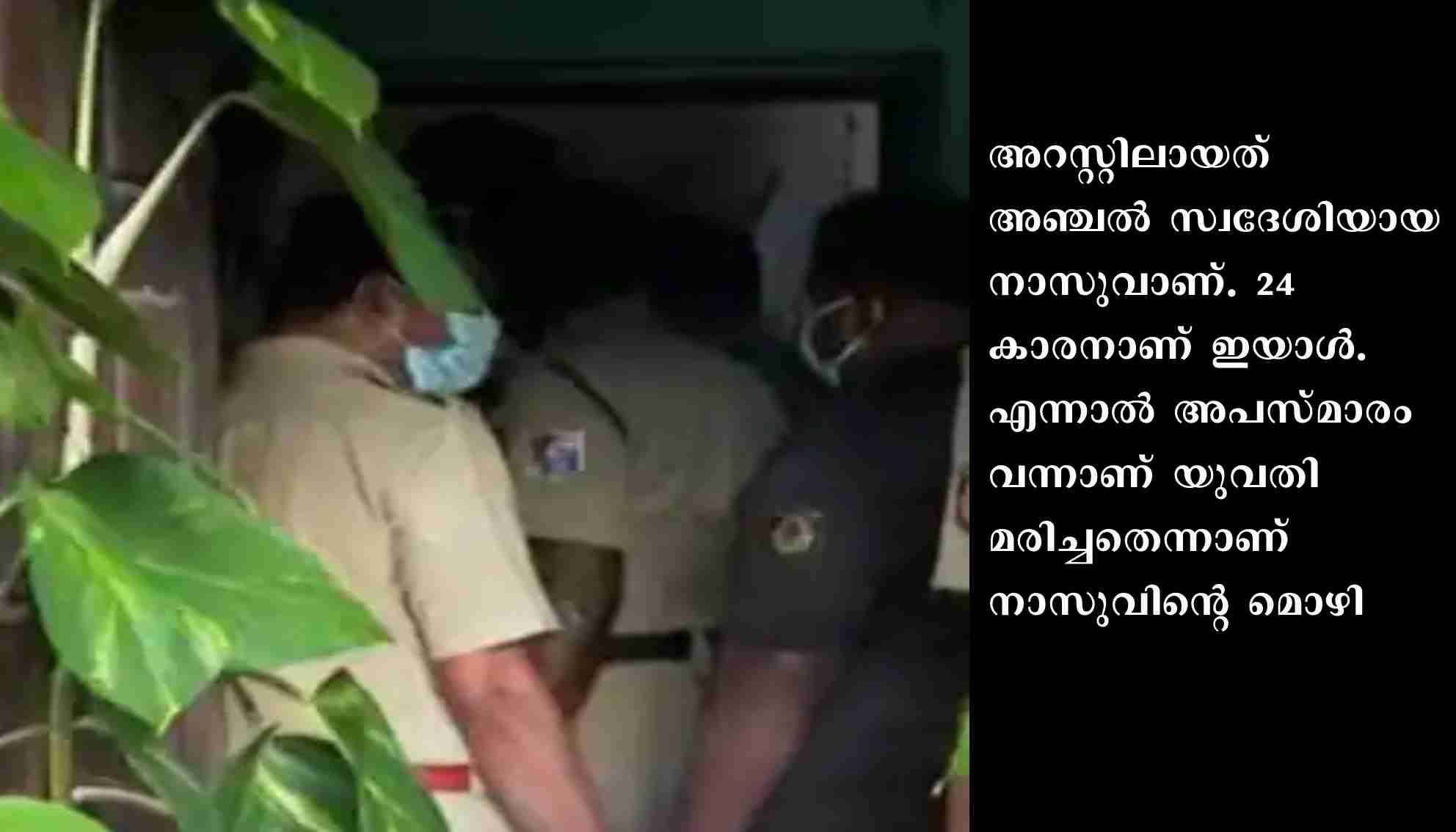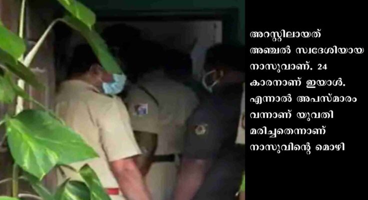 അറസ്റ്റിലായത് അഞ്ചൽ സ്വദേശിയായ നാസുവാണ്. 24 കാരനാണ് ഇയാൾ. എന്നാൽ അപസ്മാരം വന്നാണ് യുവതി മരിച്ചതെന്നാണ് നാസുവിന്റെ മൊഴി. സംഭവത്തിൽ പൊലീസ് അന്വേഷണം ആരംഭിച്ചു. ഉമാ പ്രസന്നനെയാണ് റെയിൽവേ കെട്ടിടത്തിനുള്ളിൽ മരിച്ച നിലയിൽ കണ്ടെത്തിയത്.