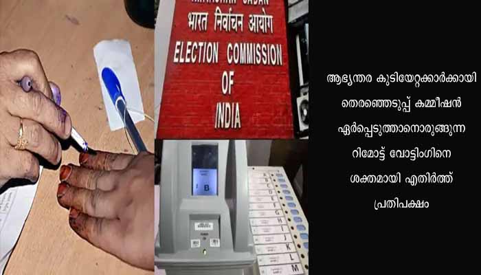 ദില്ലി:ആഭ്യന്തര കുടിയേറ്റക്കാര്‍ക്കായി തെരഞ്ഞെടുപ്പ് കമ്മീഷന്‍ ഏര്‍പ്പെടുത്താനൊരുങ്ങുന്ന റിമോട്ട് വോട്ടിംഗിനെ ശക്തമായി എതിര്‍ത്ത് പ്രതിപക്ഷം. തെരഞ്ഞെടുപ്പ് നടപടികള്‍ അട്ടിമറിക്കപ്പെടാനിടയുണ്ടെന്നാണ് കോണ്‍ഗ്രസ് അടക്കം അഞ്ച് പ്രതിപക്ഷ കക്ഷികളുടെ നിലപാട് . തെരഞ്ഞെടുപ്പുകള്‍ക്കായി പൊതു വോട്ടര്‍ പട്ടിക അംഗീകരിക്കാനാവില്ലെന്നും പ്രതിപക്ഷം വ്യക്തമാക്കി. രണ്ടായിരത്തി പത്തൊന്‍പത് ലോക് സഭ തെരഞ്ഞെടുപ്പിലെ വോട്ടിംഗ് ശതമാനം ഉദാഹരിച്ചാണ് റിമോട്ടിംഗ് വോട്ടിംഗ് എന്ന ആശയം യാഥാര്‍ത്ഥ്യമാക്കാന്‍ തെര‍ഞ്ഞെടുപ്പ് കമ്മീഷന്‍ നടപടി തുടങ്ങിയത്. ആഭ്യന്തര കുടിയേറ്റക്കാര്‍ക്ക്  അവരുടെ സംസ്ഥാനത്തെ വോട്ട് താമസിക്കുന്നയിടത്ത് ചെയ്യാനായിരുന്നെങ്കില്‍ പോളിംഗ് ശതമാനം 67 ല്‍ നിന്ന് ഉയരുമായിരുന്നുവെന്നാണ് കമ്മീഷന്‍ വിലയിരുത്തിയത്.