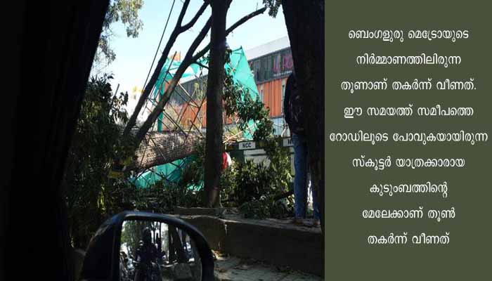 ബെംഗളുരു മെട്രോയുടെ തൂൺ തകർന്നു വീണു; അമ്മയും രണ്ടര വയസുള്ള കുഞ്ഞും കൊല്ലപ്പെട്ടു പിതാവിന് പരിക്ക്
