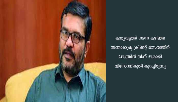വിനോദ നികുതി സർക്കാർ കുറയ്ക്കുകയാണ് ചെയ്തത്. നികുതി 12 ശതമാനത്തിൽ നിന്ന് കുറയ്ക്കാൻ കെസിഎ ആവശ്യപെട്ടിട്ടില്ല. കോർപ്പറേഷനും വരുമാനം ഉണ്ടാകണം. 24 മുതൽ 50 ശതമാനം വരെ വിനോദ നികുതി പിരിക്കാം. എന്നാൽ കെസിഎയുടെ ആവശ്യപ്രകാരമാണ് 12 ശതമാനമായി കുറച്ചതെന്നും മന്ത്രി വ്യക്തമാക്കി.