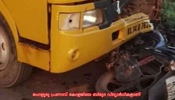 സ്കൂള് ബസും ബൈക്കും കൂട്ടിയിടിച്ച് രണ്ട് കോളജ് വിദ്യാര്ഥികള് മരിച്ചു