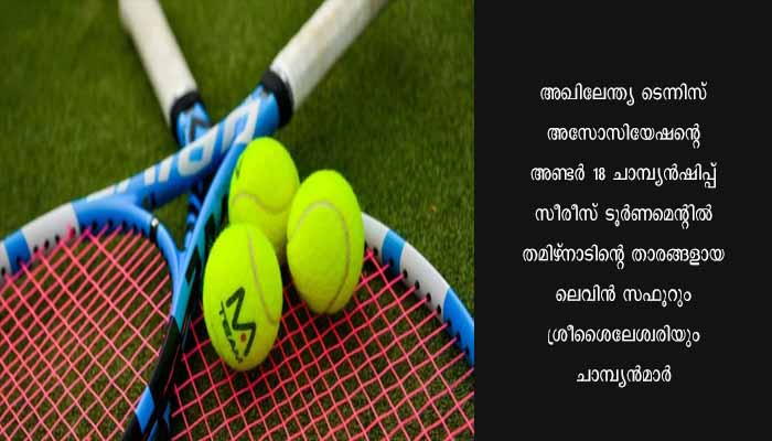 തിരുവനന്തപുരം: അഖിലേന്ത്യ ടെന്നിസ് അസോസിയേഷന്റെ അണ്ടര് 18 ചാമ്പ്യന്ഷിപ്പ് സീരീസ് ടൂര്ണമെന്റില് തമിഴ്നാടിന്റെ താരങ്ങളായ ലെവിന് സഫൂറും ശ്രീശൈലേശ്വരിയും ചാമ്പ്യന്മാര്. തിരുവനന്തപുരം കുമാരപുരം രാമനാഥ കൃഷ്ണന് ടെന്നീസ് കോംപ്ലക്സിലെ കേരള ടെന്നീസ് അക്കാദമിയില് നടന്ന മത്സരത്തില് നാട്ടുകാരനായ അദ്വൈതിനെ തോല്പ്പിച്ചാണു ലെവിന് ചാമ്പ്യനായത്.