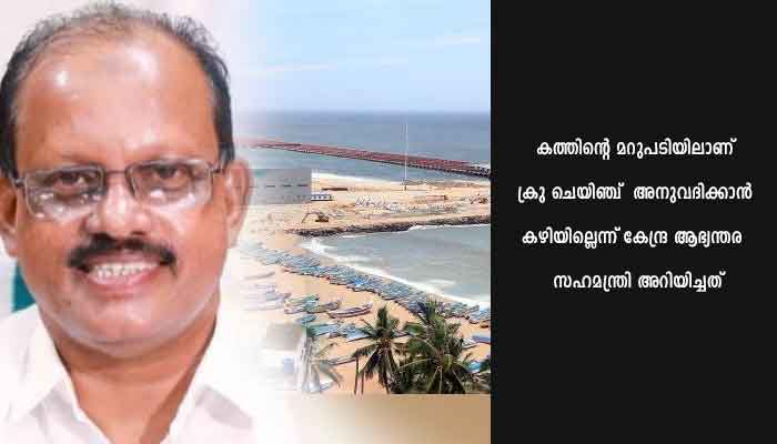 സംസ്ഥാന മാരിടൈം ബോർഡിന് പത്തുകോടിയിലധികം രൂപയുടെ വരുമാനം നേടിത്തന്ന വിഴിഞ്ഞത്തെ ക്രൂ ചെയ്ഞ്ച് ആറുമാസം മുമ്പാണ് കേന്ദ്ര ആഭ്യന്തരവകുപ്പ്  നിർത്തിവച്ചത്. ക്രു ചെയിഞ്ച് പുനരാരംഭിക്കാൻ കേന്ദ്ര ആഭ്യന്തര സഹമന്ത്രിക്കും തുറമുഖ മന്ത്രിക്കും സംസ്ഥാന തുറമുഖ വകുപ്പ് മന്ത്രി അഹമ്മദ് ദേവർകോവിൽ പലതവണ കത്തയച്ചിരുന്നു. ഈ കത്തിന്റെ മറുപടിയിലാണ് ക്രു ചെയിഞ്ച്  അനുവദിക്കാൻ കഴിയില്ലെന്ന് കേന്ദ്ര ആഭ്യന്തര  സഹമന്ത്രി ഇപ്പോൾ അറിയിച്ചിട്ടുള്ളത്.