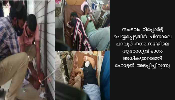 ശാരീരിക അസ്വസ്ഥത അനുഭവപ്പെട്ട് മൂന്ന് പേർ 17/01/23 ചൊവ്വാഴ്ച രാവിലെയാണ് ആശുപത്രിയിൽ ചികിത്സ തേടിയത്. സംഭവം റിപ്പോർട്ട് ചെയ്യപ്പെട്ടതിന് പിന്നാലെ പറവൂർ നഗരസഭയിലെ ആരോഗ്യവിഭാഗം അധികൃതരെത്തി ഹോട്ടൽ അടപ്പിച്ചിരുന്നു. ഹോട്ടലിൽ ഉദ്യോഗസ്ഥർ പരിശോധനയും നടത്തി. 16/01/23 തിങ്കളാഴ്ച രാത്രിയാണ് ഇവിടെ നിന്ന് കുഴിമന്തി വാങ്ങിയതെന്നാണ് വിവരം.