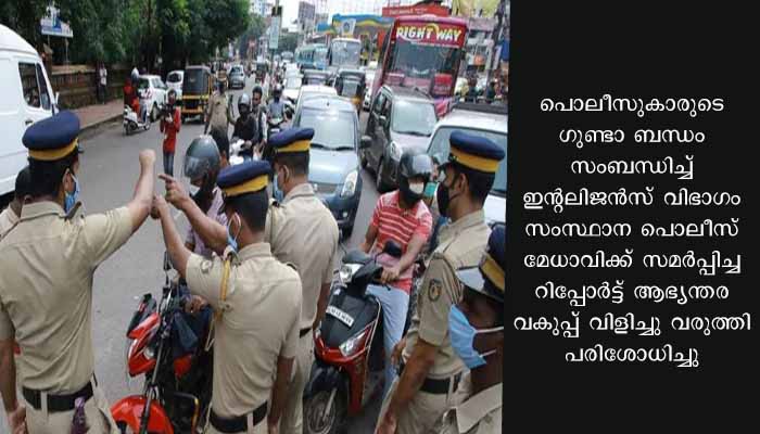 പൊലീസുകാരുടെ ഗുണ്ടാ ബന്ധം സംബന്ധിച്ച് ഇന്റലിജന്‍സ് വിഭാഗം സംസ്ഥാന പൊലീസ് മേധാവിക്ക് സമര്‍പ്പിച്ച റിപ്പോര്‍ട്ട് ആഭ്യന്തര വകുപ്പ് വിളിച്ചു വരുത്തി പരിശോധിച്ചു. പിന്നാലെയാണ് മുഖ്യമന്ത്രിയുടെ നിര്‍ദ്ദേശ പ്രകാരം ആഭ്യന്തര വകുപ്പ് ശക്തമായ നടപടിക്കു നിര്‍ദ്ദേശം നല്‍കിയത്. തിരുവനന്തപുരത്തു 2 ഡിവൈഎസ്പി മാര്‍ക്കെതിരെ നടപടിക്കു ശുപാര്‍ശ ചെയ്തിട്ടുണ്ട്. ഗുണ്ടകളുടെ പാര്‍ട്ടിയില്‍ പങ്കെടുത്തെന്നും, പണമിടപാട് നടത്തിയെന്നുമുള്ള റിപ്പോര്‍ട്ടിലാണ് ശുപാര്‍ശ. റിയല്‍ എസ്റ്റേറ്റ് മാഫിയയുമായി അടുത്ത ബന്ധം പുലര്‍ത്തിയ പൊലീസുകാര്‍ക്കെതിരെ ഉടന്‍ വിജിലന്‍സ് അന്വേഷണവും ഉണ്ടാകും.