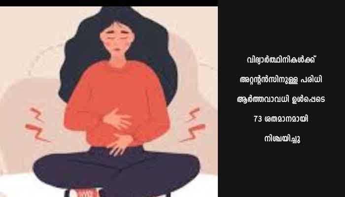 വിദ്യാർത്ഥിനികൾക്ക് അറ്റന്റൻസിനുള്ള പരിധി ആർത്തവാവധി ഉൾപ്പെടെ 73 ശതമാനമായി നിശ്ചയിച്ചുകൊണ്ടാണ് ഉത്തരവിറക്കിയിരിക്കുന്നത്. സർവ്വകലാശാല നിയമങ്ങളിൽ ഇതിനാവശ്യമായ ഭേദഗതികൾ വരുത്താൻ സർവ്വകലാശാലകൾക്ക് നിർദ്ദേശം നൽകി.