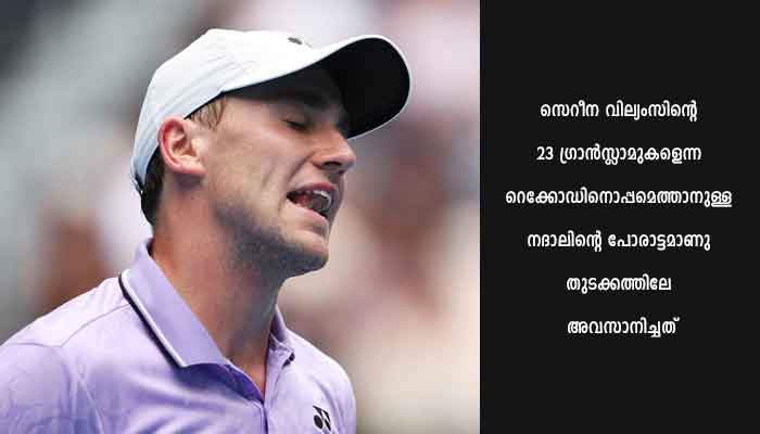 മക്ഡൊണാള്ഡാണ് സ്പാനിഷ് താരത്തെ അട്ടിമറിച്ചത്. മത്സരത്തിനിടെ ഇടുപ്പിനു പരുക്കറ്റ നദാല് ചികിത്സയ്ക്കായി ടൈം ഔട്ട് എടുത്തിരുന്നു. മത്സരത്തിനു ശേഷം നടത്തിയ വിശദ വൈദ്യ പരിശോധനയിലാണു താരത്തിനു കായിക ക്ഷമത വീണ്ടെടുക്കാന് എട്ടാഴ്ച വേണ്ടിവരുമെന്ന് ഉറപ്പായത്. വനിതാ താരം സെറീന വില്യംസിന്റെ 23 ഗ്രാന്സ്ലാമുകളെന്ന റെക്കോഡിനൊപ്പമെത്താനുള്ള നദാലിന്റെ പോരാട്ടമാണു തുടക്കത്തിലേ അവസാനിച്ചത്. കഴിഞ്ഞ ഓസ്ട്രേലിയന് ഓപ്പണ് ഫൈനലില് ഡാനില് മെദ്വദേവിനെ തോല്പ്പിച്ചതോടെ നദാല് 21-ാം ഗ്രാന്സ്ലാം സ്വന്തമാക്കി. ഫ്രഞ്ച് ഓപ്പണില് ജേതാവായതോടെ 22-ാം ഗ്രാന്സ്ലാമും സ്വന്തമായി. 22 ഗ്രാന്സ്ലാമുകള് നേടുന്ന ആദ്യ പുരുഷ താരമെന്ന റെക്കോഡും അതോടെ 36 വയസുകാരനായ നദാല് സ്വന്തമാക്കി.