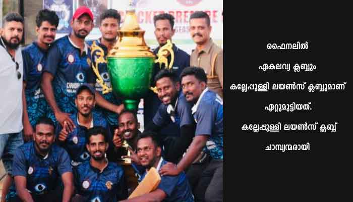 പാലക്കാട് ഏകലവ്യ ക്രിക്കറ്റ് ക്ലബ്ബും പാലക്കാട് വിമുക്തിയും സംയുക്തമായി ലഹരിക്കെതിരെ ക്രിക്കറ്റ് ടൂര്ണമെന്റ് സംഘടിപ്പിച്ചു. ടൂര്ണമെന്റില് കല്ലേപ്പുള്ളി ലയണ്സ് ക്ലബ്ബ് ചാമ്പ്യന്മാരായി. ഫൈനലില് ഏകലവ്യ ക്ലബ്ബും കല്ലേപ്പുള്ളി ലയണ്സ് ക്ലബ്ബുമാണ് ഏറ്റുമുട്ടിയത്. എട്ട് ടീമുകളിലായി 104 കളിക്കാര് പങ്കെടുത്തു.