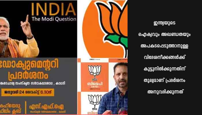 ‘ബിബിസി ഡോക്യുമെന്റി മതസ്പർദ്ധ വളർത്തും, കേരളത്തിലെ പ്രദര്ശനം തടയണം, രാജ്യദ്രോഹ പ്രവർത്തനം മുളയിലേ നുള്ളണം ‘