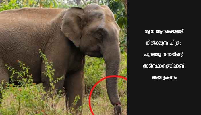 ആന ആനക്കയത്ത് നിൽക്കുന്ന ചിത്രം പുറത്തു വന്നതിന്റെ അടിസ്ഥാനത്തിലാണ് അന്വേഷണം. തുമ്പിക്കൈ മുക്കാൽ ഭാഗത്തോളം മുറിഞ്ഞ നിലയിലാണ് കാട്ടാന.