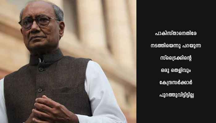 എന്നാല്, ദിഗ്വിജയ് സിങ്ങിന്റെ നിലപാടിനും മേലാണ് കോണ്ഗ്രസിന്റെ നിലപാടെന്ന് ഇന്നലെ രാഹുല് വാര്ത്താമാധ്യമങ്ങളോടു പ്രതികരിച്ചു. കോണ്ഗ്രസ് ഒരുകാലത്തും സൈന്യത്തെ ചോദ്യംചെയ്തിട്ടില്ല. സൈന്യം അവരുടെ ജോലി നന്നായി ചെയ്യുണ്ട്. അതിന്റെ തെളിവ് പുറത്തുവിടേണ്ട ബാധ്യത അവര്ക്കില്ലെന്നും രാഹുല് തിരുത്തി.