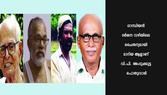 ഗാന്ധിയന് ദര്ശന വഴിയിലെ ചൈതന്യമായി മാറിയ ആളാണ് വി.പി. അപ്പുക്കുട്ട പൊതുവാള്. 1930-ന് ഉപ്പു സത്യഗ്രഹജാഥ നേരിട്ടുകണ്ടതിന്റെ ആവേശത്തില് അദ്ദേഹം സ്വാതന്ത്ര്യസമരത്തിന്റെ ഭാഗമായി.