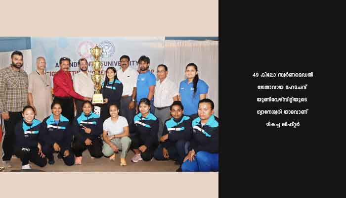 ആതിഥേയരായ കാലിക്കറ്റ് സര്വകലാശാല 147 പോയന്റുമായി നാലാംസ്ഥാനം നേടി. മെഡല് നിലയില് മൂന്നു സ്വര്ണം നേടിയ ഗുരുകാശി ഒന്നാം സ്ഥാനവും രണ്ട് സ്വര്ണവുമായി കാലിക്കറ്റ് സര്വകലാശാല രണ്ടാമതും എത്തി. 49 കിലോ സ്വര്ണമെഡല് ജേതാവായ ഹേമചന്ദ് യൂണിവേഴ്സിറ്റിയുടെ ഗ്യാനേശ്വരി യാദവാണ് മികച്ച ലിഫ്റ്റര്. എണ്പത്തേഴ് സര്വകലാശാലകളില് നിന്നായി എഴുന്നൂറില്പരം താരങ്ങളാണ് ചാമ്പ്യന്ഷിപ്പില് മാറ്റുരച്ചത്. ഇന്നലെ നടന്ന 87 വിഭാഗത്തില് ഗുരു കാശി യൂണിവേഴ്സിറ്റിയുടെ അക്ഷത കമടി ആകെ 199 കി.ലോ ഭാരം ഉയര്ത്തി ഒന്നാം സ്ഥാനവും ശിവജി യൂണിവേഴ്സിറ്റിയുടെ ബോംഗെലെ സ്നേഹല് 197 കി.ലോ ഉയര്ത്തി രണ്ടാം സ്ഥാനവും യോഗി വേമന യൂണിവേഴ്സിറ്റിയുടെ സ്വപ്ന പ്രിയ ബുറ 194കി.ലോ ഭാരം ഉയര്ത്തി മൂന്നാം സ്ഥാനവും കരസ്ഥമാക്കി. അവസാനം നടന്ന 87 വിഭാഗത്തില് കുരുക്ഷേത്ര യൂണിവേഴ്സിറ്റിയുടെ മുസ്കന് ബുറ സിംഗ് ആകെ 202 കി.ലോ ഭാരം ഉയര്ത്തി ഒന്നാം സ്ഥാനവും സാവിത്രി ഭായ് യൂണിവേഴ്സിറ്റിയുടെ ദൊരെ രുചിക 183 കി.ലോ ഭാരം ഉയര്ത്തി രണ്ടാം സ്ഥാനവും ദേശ് ഭഗത് യൂണിവേഴ്സിറ്റിയുടെ നരിന്ദര് കൗര് 177 കി.ലോ ഭാരം ഉയര്ത്തി മൂന്നാം സ്ഥാനവും കരസ്ഥമാക്കി. വിജയികള്ക്ക് സര്വ്വകലാശാല വൈസ് ചാന്സലര് ഡോ. എം.കെ. ജയരാജ് ട്രോഫികള് വിതരണം ചെയ്തു. അസോസിയേഷന് ഓഫ് ഇന്ത്യന് യൂണിവേഴ്സിറ്റി ഒബ്സര്വര് മസ്ഹറുല് ഖമര്, കായിക വിഭാഗം മേധാവി ഡോ.സക്കീര് ഹുസൈന്, ഡയറക്ടര് ഡോ. കെ.പി. മനോജ് സംബന്ധിച്ചു.
