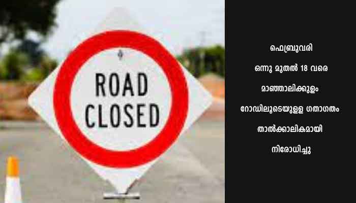 തിരുവനന്തപുരം തമ്പാനൂർ ഭാഗത്തുളള മാഞ്ഞാലിക്കുളം റോഡിനു കുറുകെ കലുങ്ക് നിർമ്മിക്കേണ്ടതിനാൽ ഫെബ്രുവരി ഒന്നു മുതൽ 18 വരെ മാഞ്ഞാലിക്കുളം റോഡിലൂടെയുളള ഗതാഗതം താൽക്കാലികമായി നിരോധിച്ചു. മഞ്ഞാലിക്കുളം റോഡു വഴി പോകേണ്ട വാഹനങ്ങൾ എസ്.എസ് കോവിൽ റോഡു വഴിയോ, ഹൗസിംഗ് ബോർഡ് മോഡൽ സ്കൂൾ ജംഗ്ഷൻ-അരിസ്റ്റോ ജംഗ്ഷൻ തമ്പാനൂർ വഴിയോ കടന്നു പോകേണ്ടതാണെന്ന് പി ഡബ്ല്യു ഡി റോഡ്സ് വിഭാഗം എക്സിക്യൂട്ടിവ് എഞ്ചിനീയർ അറിയിച്ചു.