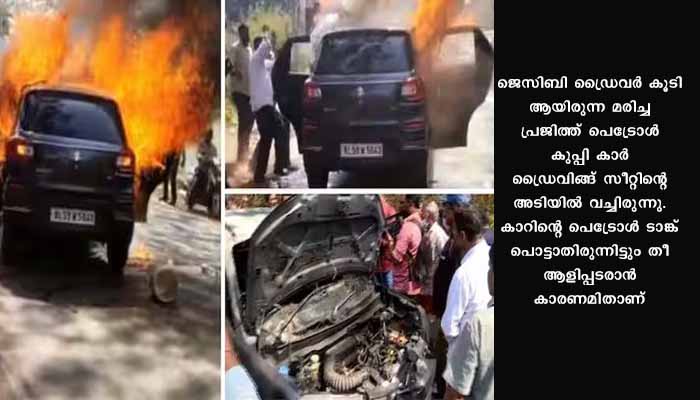 കണ്ണൂർ : കണ്ണൂരിൽ ദമ്പതികൾ വെന്തുമരിച്ച കാർ അപകടത്തിന്റെ കാരണം കണ്ടെത്തി മോട്ടോർ വാഹന വകുപ്പ് അന്വേഷണ സംഘം. കാറിനുള്ളിൽ രണ്ട് കുപ്പി പെട്രോൾ സൂക്ഷിച്ചിരുന്നുവെന്നും ഷോർട്ട് സർക്യൂട്ട് വഴിയുണ്ടായ തീ കൂടുതൽ വേഗത്തിൽ പടർന്ന് പിടിക്കാനിത് ഇടയാക്കിയെന്നുമാണ് എംവിഡി കണ്ടെത്തൽ. ജെസിബി ഡ്രൈവർ കൂടി ആയിരുന്ന മരിച്ച പ്രജിത്ത് രണ്ട് കുപ്പി പെട്രോൾ കാർ ഡ്രൈവിങ്ങ് സീറ്റിന്റെ അടിയിൽ വച്ചിരുന്നു. കാറിന്റെ പെട്രോൾ ടാങ്ക് പൊട്ടാതിരുന്നിട്ടും തീ ആളിപ്പടരാൻ കാരണമിതാണ്. എയർ പ്യൂരിഫയർ ഉണ്ടായിരുന്നതും അപകടത്തിന്റെ ആഘാതം കൂട്ടി. തീ ഡോറിലേക്ക് പടർന്നതിനാൽ ലോക്കിങ്ങ് സിസ്റ്റവും പ്രവർത്തനരഹിതമായി.