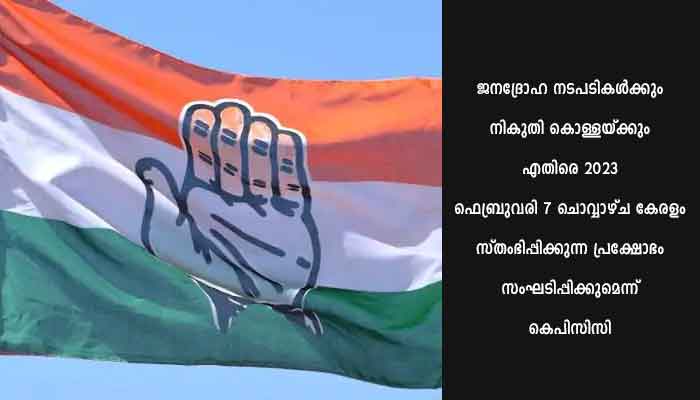 തിരുവനന്തപുരം: ജനത്തിന്റെ നടുവൊടിക്കുന്ന നികുതി നിർദ്ദേശങ്ങൾ പിൻവലിക്കുന്നത് വരെ അതിശക്തമായ സമരപരിപാടികൾ ആസൂത്രണം ചെയ്ത് കെപിസിസി. കേരള സർക്കാർ ബജറ്റിലൂടെ നടത്തിയ ജനദ്രോഹ നടപടികൾക്കും നികുതി കൊള്ളയ്ക്കും എതിരെ 2023 ഫെബ്രുവരി 7 ചൊവ്വാഴ്ച കേരളം സ്തംഭിപ്പിക്കുന്ന പ്രക്ഷോഭം സംഘടിപ്പിക്കുമെന്ന് കെപിസിസി അറിയിച്ചു. ഡിസിസികളുടെ നേതൃത്വത്തിൽ തിരുവനന്തപുരത്ത് സെക്രട്ടറിയേറ്റിലേക്കും മറ്റു ജില്ലകളിൽ കളക്ട്രേറ്റുകളിലേക്കും പ്രതിഷേധ മാർച്ച് സംഘടിപ്പിക്കുമെന്ന് കെപിസിസി ജനറൽ സെക്രട്ടറി ടി യു.രാധാകൃഷ്ണൻ പറഞ്ഞു