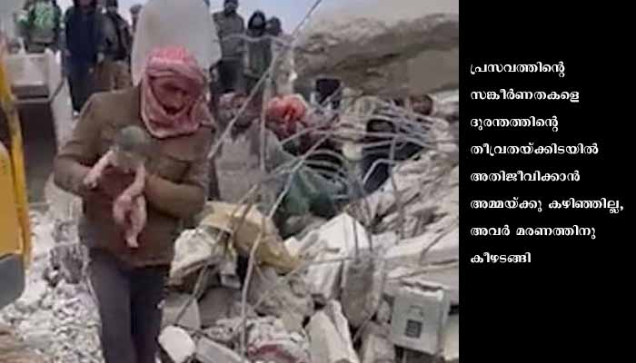 അലപ്പോ: ദുരന്തഭൂമിയില്‍ പിറന്നുവീണയുടന്‍ അമ്മയെ നഷ്ടപ്പെട്ട കുഞ്ഞിന്റെ ചിത്രമാണ് സിറിയയിലെ ഭൂകമ്പത്തിന്റെ കണ്ണീര്‍ക്കാഴ്ച. ഭൂകമ്പാവശിഷ്ടങ്ങള്‍ക്കിടയിലേക്കാണ് ആ കുഞ്ഞ് പിറന്നുവീണത്. സര്‍വതും തകര്‍ന്നിടത്തേക്ക് മരണത്തെയും അതിജീവിച്ചെത്തിയ കുഞ്ഞിന് അമ്മയെ നഷ്ടമായി. പ്രസവത്തിന്റെ സങ്കീര്‍ണതകളെ ദുരന്തത്തിന്റെ തീവ്രതയ്ക്കിടയില്‍ അതിജീവിക്കാന്‍ അമ്മയ്ക്കു കഴിഞ്ഞില്ല, അവര്‍ മരണത്തിനു കീഴടങ്ങി. എന്നാല്‍, മരണത്തെ തോല്‍പ്പിക്കാന്‍ ആ കുഞ്ഞുമായി ആശുപത്രിയിലേക്കു പായുന്ന രക്ഷാപ്രവര്‍ത്തകരുടെ ദൃശ്യവും ചിത്രങ്ങളും കണ്ണീര്‍ക്കാഴ്ചകള്‍ക്കിടയിലും സമൂഹമാധ്യമങ്ങളില്‍ വ്യാപകമായി പ്രചരിച്ചു, സങ്കടഭൂമിയില്‍നിന്നുള്ള പ്രതീക്ഷയുടെയും അതിജീവനത്തിന്റെയും ചിത്രമെന്ന പേരില്‍.