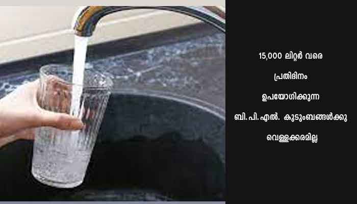 - 10,000-15,000 ലിറ്റര്: 10,000 ലിറ്റര് വരെ കുറഞ്ഞനിരക്ക് 44.10 രൂപയില് നിന്നും 144.10 രൂപയായി ഉയരും. തുടര്ന്നുള്ള ഓരോ 1000 ലിറ്ററിനും 15.51 രൂപ അധികം നല്കണം.
