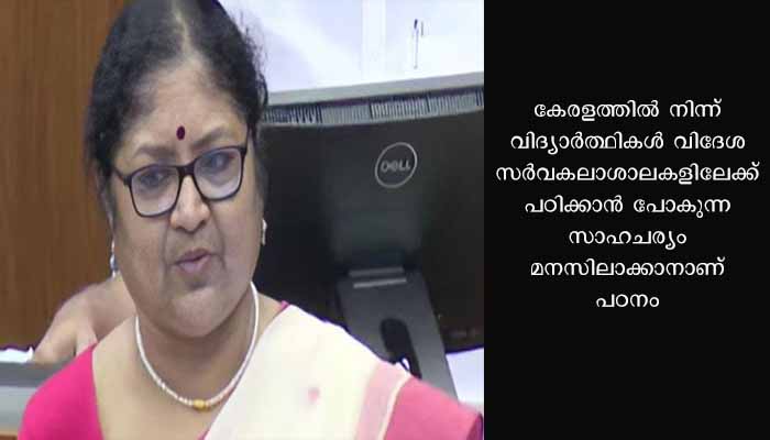 കേരളത്തിലെ വിദ്യാര്‍ത്ഥികള്‍ വിദേശത്ത് പോകുന്നതിനെക്കുറിച്ച് പഠിക്കും: ആര്‍. ബിന്ദു
