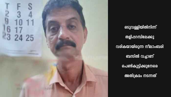 തളിപ്പറമ്പ്: ബസില് പ്രായപൂര്ത്തിയെത്താത്ത വിദ്യാര്ഥിനിയെ ലൈംഗിക ഉദ്ദേശത്തോടെ ശരീരത്തില് സ്പര്ശിച്ചു ലൈംഗികാതിക്രമം നടത്തിയ ബാങ്ക് ജീവനക്കാരന് പോക്സോ നിയമപ്രകാരം അറസ്റ്റിലായി. ആലക്കോട്ടെ കുണ്ടുകുളങ്ങര വീട്ടില് കെ.കെ. ജോസ്(57)നെയാണ് തളിപ്പറമ്പ് എസ്.ഐ: പി.യദുകൃഷ്ണന് അറസ്റ്റ് ചെയ്തത്. ഇന്നലെ രാവിലെ എട്ടരയോടെയായിരുന്നു സംഭവം. ഒടുവള്ളിയില്നിന്ന് തളിപ്പറമ്പിലേക്കു വരികയായിരുന്ന നീലാംബരി ബസില് വച്ചാണ് പെണ്കുട്ടിക്കുനേരെ അതിക്രമം നടന്നത്. ബസില് തൊട്ടടുത്ത സീറ്റില് ഇരിക്കവെയാണ് ജോസ് പെണ്കുട്ടിയെ പീഡിപ്പിക്കാന് ശ്രമിച്ചത്. പെണ്കുട്ടി ബഹളം വച്ചതിനെത്തുടര്ന്ന് പോലീസിനെ അറിയിക്കുകയായിരുന്നു. പരാതിയില് കേസെടുത്ത പോലീസ് പ്രതിയുടെ അറസ്റ്റ് രേഖപ്പെടുത്തി കോടതിയില് ഹാജരാക്കി റിമാന്ഡ് ചെയ്തു. തളിപ്പറമ്പ് മന്നയിലെ കാത്തലിക് സിറിയന് ബാങ്ക് ജീവനക്കാരനാണ് ജോസ്.