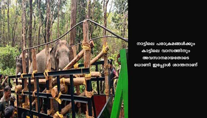 മയക്കുവെടി വച്ച് കൊണ്ടുപോയ ധോണി ഇപ്പോള് എവിടെയാണെന്നാണ് നാട്ടുകാരും ചോദിക്കുന്നത്. തടിക്കൂട്ടിലായ ധോണി കൂടുജീവിതത്തോട് ഏതാണ്ട് ഇണങ്ങി തുടങ്ങിയിരിക്കുകയാണ്. കുറുമ്പനായിരുന്ന കൊമ്പന് ഇപ്പോള് ശാന്ത സ്വഭാവക്കാരനായി മാറുന്നുണ്ട്. ദേഹത്തെ മുറിവുകള് ഒഴിച്ചാല് ആന പൂര്ണ്ണ ആരോഗ്യവാനാണെന്നാണ് വെറ്റനറി ഡോക്ടര്മാര് പറയുന്നത്.