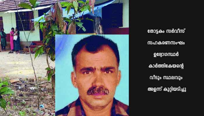 ഇന്നലെ ഉച്ചയ്ക്ക് 12.15-നാണ് തോട്ടകം സര്വീസ് സഹകരണസംഘം ഉദ്യോഗസ്ഥര് കാര്ത്തികേയന്റെ വീടും സ്ഥലവും അളന്ന് കുറ്റിയടിച്ചത്. ഇവര് മടങ്ങിയശേഷം സഹോദരപുത്രന് രാജേഷ് വീട്ടിലെത്തിയപ്പോഴാണ് മുറിക്കുള്ളില് തൂങ്ങിമരിച്ചനിലയില് കാര്ത്തികേയനെ കാണുന്നത്.