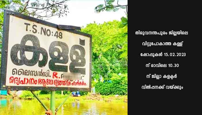 തിരുവനന്തപുരം ജില്ലയിലെ വിറ്റുപോകാത്ത കള്ള് ഷോപ്പുകൾ 15.02.2023 ന് രാവിലെ 10.30 ന് ജില്ലാ കളക്ടർ വിൽപ്പനക്ക് വയ്ക്കും. വിറ്റുപോയില്ലെങ്കിൽ ഇവ 16.02.2023 ന് രാവിലെ 10.30ന് റെന്റൽ തുകയിൽ 50% കുറവ് വരുത്തി വീണ്ടും വിൽപ്പന നടത്തുന്നതാണ്. നെടുമങ്ങാട്, വാമനപുരം, ചിറയികീഴ്, വർക്കല, കിളിമാനൂർ റേഞ്ചുകളിലെ വിവിധ ഗ്രൂപ്പുകളിൽ വരുന്ന ഷോപ്പുകളാണ് പുനർ വിൽപ്പന നടത്തുന്നത്. വിൽപ്പനയിലൂടെ ലഭിക്കുന്ന അവകാശം 31.03.2023 വരെയോ അല്ലെങ്കിൽ റ്റോഡി ബോർഡ് നിലവിൽ വരുന്നതുവരെയോ ആയിരിക്കുമെന്ന് തിരുവനന്തപുരം ഡെപ്യൂട്ടി എക്സൈസ് കമ്മീഷണർ അറിയിച്ചു. വില്പന സംബന്ധിച്ച വിവരങ്ങൾ തിരുവനന്തപുരം എക്സൈസ് ഡിവിഷൻ ഓഫീസിൽ നിന്നും നെയ്യാറ്റിൻകര, തിരുവനന്തപുരം, നെടുമങ്ങാട്, ആറ്റിങ്ങൽ, വർക്കല എന്നീ എക്സൈസ് സർക്കിൾ ഓഫീസുകളിൽ നിന്നും തിരുവനന്തപുരം ഡിവിഷനിലെ എല്ലാ റേഞ്ച് ഓഫീസുകളിൽ നിന്നും അറിയാവുന്നതാണ്.