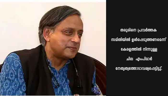 ദില്ലി: കോൺഗ്രസ് പ്രവർത്തക സമിതിയിലേക്ക് ശശി തരൂരിനെ പരിഗണിക്കുമോയെന്ന ആകാംക്ഷകൾക്കിടെ തരൂരിന് പ്ലീനറി സമ്മേളനത്തിൽ ചുമതല നൽകി. പ്ലീനറി സമ്മേളനത്തിനായി ആദ്യഘട്ടം നിലവിൽ വന്ന കമ്മിറ്റികളിലില്ലായിരുന്നെങ്കിലും ജയറാം രമേശിൻറെ നേതൃത്വത്തിലുള്ള 21 അംഗ സമിതിയിൽ തരൂരിനെ ഉൾപ്പെടുത്തിയിരിക്കുന്നു. എന്നാൽ വർക്കിംഗ് കമ്മിറ്റി പ്രവേശത്തിൻറെ കാര്യത്തിൽ ഹൈക്കമാൻഡ് ഇനിയും അന്തിമ നിലപാടിൽ എത്തിയിട്ടില്ലെന്നാണ് സൂചന.