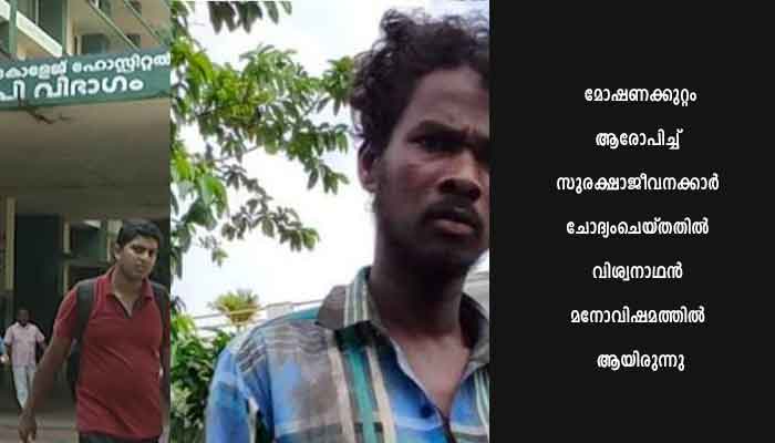 പ്രസവത്തിനായി പ്രവേശിപ്പിച്ച ഭാര്യക്ക് കൂട്ടിരിക്കാനാണ് വിശ്വനാഥന്‍ ആശുപത്രിയിലെത്തിയത്. സംഭവത്തില്‍ മനുഷ്യാവകാശ കമ്മിഷനും കേസെടുത്തിട്ടുണ്ട്. കോഴിക്കോട് മെഡിക്കല്‍ കോളജിനു സമീപത്തെ ഒഴിഞ്ഞ പ്രദേശത്തെ മരത്തില്‍ തൂങ്ങിമരിച്ചനിലയിലാണ് വിശ്വനാഥനെ കണ്ടെത്തിയത്. ഭാര്യയുടെ പ്രസവത്തിനായി എത്തിയ ഇയാളെ കാണാനില്ലെന്നു കാണിച്ചു ബന്ധുക്കള്‍ പോലീസില്‍ പരാതി നല്‍കിയിരുന്നു. വീട്ടുകാരുടെ പരാതിയില്‍ പോലീസ് കേസെടുത്തിരുന്നു. മോഷണക്കുറ്റം ആരോപിച്ച് സുരക്ഷാജീവനക്കാര്‍ ചോദ്യംചെയ്തതില്‍ വിശ്വനാഥന്‍ മനോവിഷമത്തില്‍ ആയിരുന്നെന്നാണു ബന്ധുവിന്റെ ആരോപണം. മരിച്ചത് എങ്ങനെയെന്ന് അറിയണമെന്നും ബന്ധുക്കള്‍ ആവശ്യപ്പെട്ടു. മെഡിക്കല്‍ കോളജ് പോലീസ് അസിസ്റ്റന്റ് കമ്മിഷണറും മെഡിക്കല്‍ കോളജ് ആശുപത്രി സൂപ്രണ്ടും അന്വേഷണം നടത്തി ഒരാഴ്ചക്കകം റിപ്പോര്‍ട്ട് സമര്‍പ്പിക്കണമെന്ന് കമ്മിഷന്‍ ജുഡീഷ്യല്‍ അംഗം കെ. ബൈജുനാഥ് ആവശ്യപ്പെട്ടു.