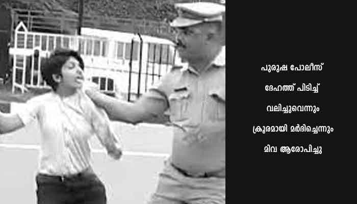 കളമശേരി മെഡിക്കല് കോളജിലെ വ്യാജ ജനന സര്ട്ടിഫിക്കറ്റ് വിഷയത്തില് നടപടി സ്വീകരിക്കണമെന്ന് ആവശ്യപ്പെട്ട് മുഖ്യമന്ത്രിക്കു നേരെ കരിങ്കൊടി കാണിക്കവെ കെ.എസ്.യു പ്രവര്ത്തക മിവ ജോളിക്കാണ് മര്ദനമേറ്റത്. പുരുഷ പോലീസ് ദേഹത്ത് പിടിച്ച് വലിച്ചുവെന്നും ക്രൂരമായി മര്ദിച്ചെന്നും മിവ ആരോപിച്ചു.