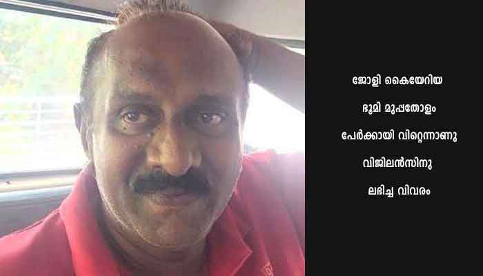 ജോളിയുടെയും കുടുംബാംഗങ്ങളുടെയും പേരില് 110 ഏക്കര് വാഗമണിലുണ്ടായിരുന്നെന്നും അതില് പട്ടയമില്ലാത്ത 55 ഏക്കര് പലര്ക്കായി വ്യാജരേഖ ചമച്ച് വിറ്റെന്നും കേസുണ്ട്. 55 ഏക്കര് സര്ക്കാര്ഭൂമി കൈയേറി വിറ്റ കേസിലും ഇയാള് പ്രതിയാണ്. റവന്യൂ വകുപ്പ് ഉദ്യോഗസ്ഥരടക്കം പ്രതിക്കൂട്ടിലായ കേസില് ക്രൈം ബ്രാഞ്ച് അന്വേഷണം പുരോഗമിക്കുകയാണ്. ജോളി കൈയേറിയ ഭൂമി മുപ്പതോളം പേര്ക്കായി വിറ്റെന്നാണു വിജിലന്സിനു ലഭിച്ച വിവരം. ഇക്കാര്യം വിശദമായി അന്വേഷിച്ചുവരുകയാണെന്നു പോലീസ് ഇന്സ്പെക്ടര് ടി.ആര്. അരുണ് പറഞ്ഞു.